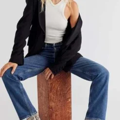 The cuff trend for the season continues with our Dame Jean. Featuring a waist accentuating high-rise, a relaxed cut through the hips and a wide leg finished with a untacked cuff. Create an ultra-flattering silhouette by styling it with a sleek tee.