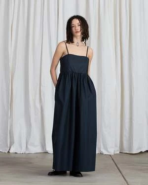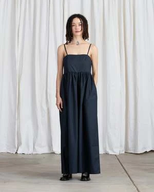 A full legged jumper with square neck, adjustable spaghetti straps and backside zip up closure.