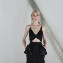 Nineties inspired high-rise knickers with adjustable straps. Made from sheer recycled flocked mesh.