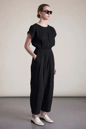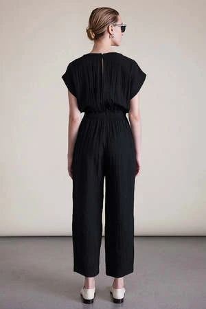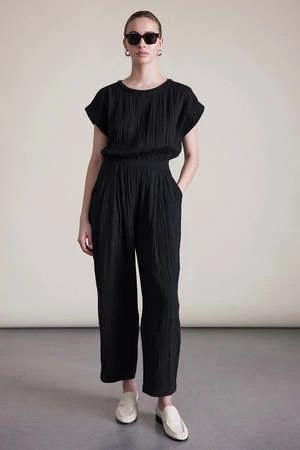 Fit: True to size | Crew neckline, button and loop closure at back neck, front slash pockets, dropped shoulder, elastic at the waist