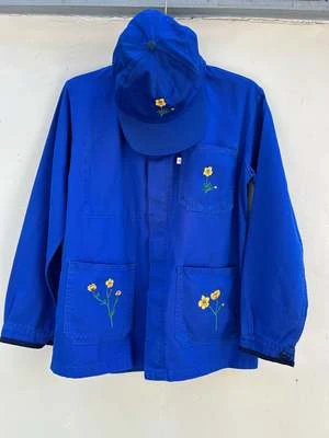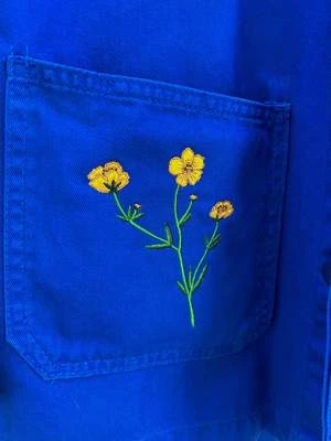 This one-of-a-kind secondhand workwear Jacket. Has been up-cycled with Flower Embroidery.