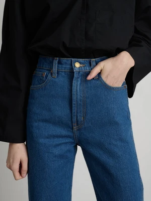 B Sides Plein High Relaxed Straight Jeans are cut from ring-spun indigo-dyed cotton denim, that is lifted to true blue for a crisp tailored look. The High rise fit is designed to sit at the natural waist and fall into a relaxed straight silhouette with a clean fit through the hip and thigh with a straight leg opening.