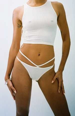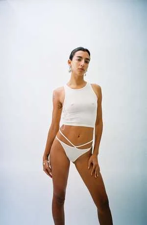 Fine cotton rib underpants. Elastic trim at waist and leg. The philosophy behind Baserange is to create clean, easy, and accessible garments that exist somewhere between modern culture and the natural world. Worn with the Undyed Tie Tank Bra.