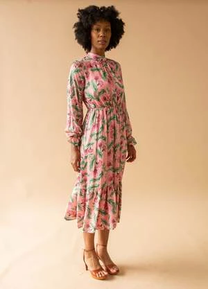 The perfect way to liven up your wardrobe! This eye-catching midi dress features a stunning floral print and cute ruffle sleeves. Get ready to make a statement in this stylish, fun, and fashionable piece.