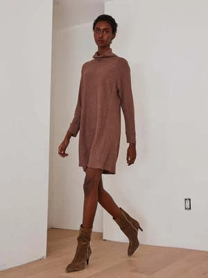 Pop over sweater dress with long sleeves and relaxed turtleneck