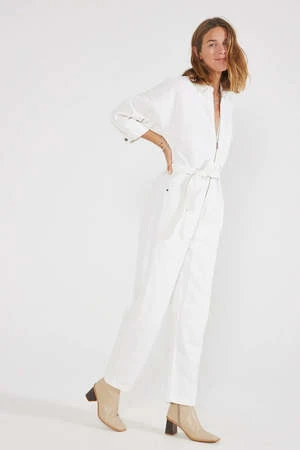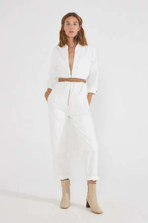 A versatile one-piece with a straight fit, a self belt and authentic carpenter detailing.