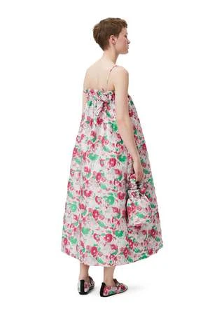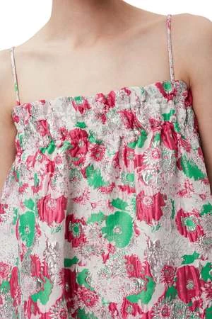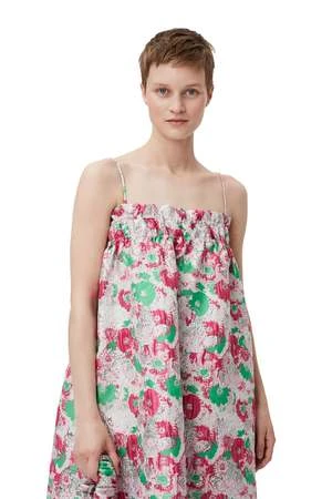 This 3D Jacquard Strap Dress is made from a blend of certified recycled polyester. The dress is designed for a relaxed fit and features spaghetti straps, side slit pockets, an elasticated top and a 3D flower jacquard pattern.