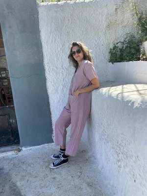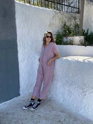 STORY: When I was a kid my mum made some jumpsuits for me. At least one pink and one black with some cute prints on them. I remember that they were SO comfy and that I was feeling cool and confident when I wore them. I found that super soft and heavy linen and decided to make one just to feel how it is again… Not disappointed at all, I feel all the powers, plus I get extra compliments for the cool shape and color!