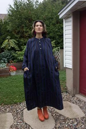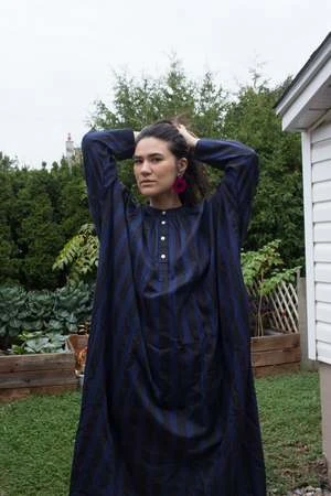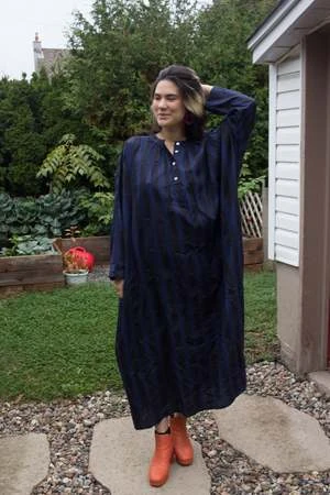 Kate Austin’s Georgia Dress is the perfect cult-leader-meets-WFH dress. It has a mandarin collar, raglan sleeves and is made long and roomy making it perfect for moving and grooving. This style is comfortable, yet still refined in the shape. Rock it at work, then fall asleep in it after!