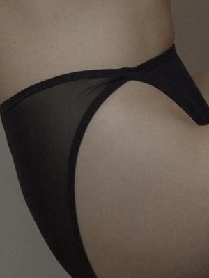 Structured, sheer mid rise brief made from very soft, high quality mesh. Close to skin fit. Unique, overlap waist detail forming dramatic high cut legs. Full coverage yet lightweight. 100% cotton lining. Considered for the everyday.