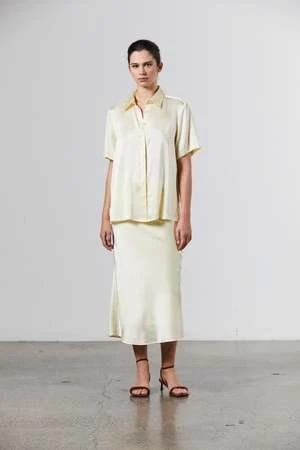 A graceful bias cut skirt of silk in the palest yellow / limoncello tone. Fully lined to promote effortless wear of this indispensable wardrobe style.