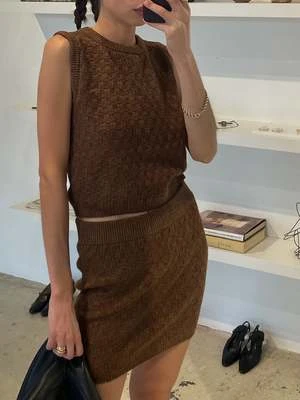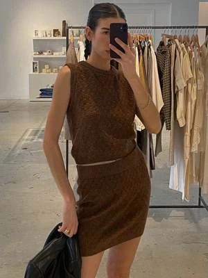 A cute little knit top with a checker texture. We love this styled with boots and the matching skirt. Or you can wear a top a turtleneck/buttondown.