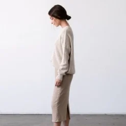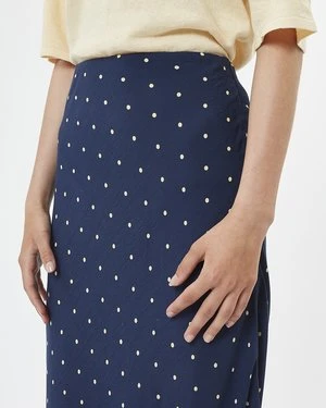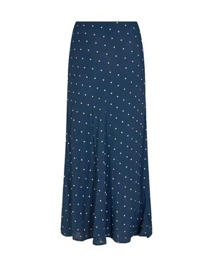 Long skirt with polka dot print made of viscose eco vero (totally sustainable fabric) with hidden zipper inside seam.