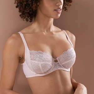 This lacy 4-part bra is engineered to support without sacrificing comfort. The bottom of the cups are lined with rigid tulle for extra support. This comes through 42H!