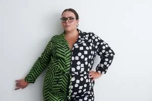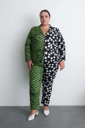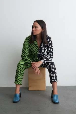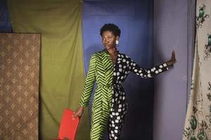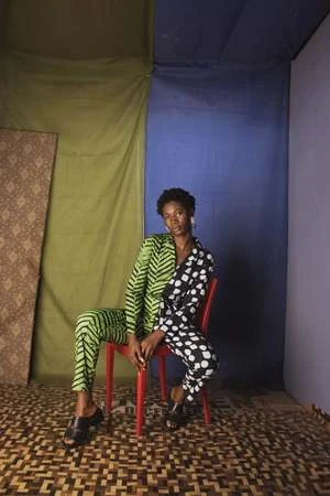 Eyiwaa is 5’9″ and wears a size S (pictured with red chair)