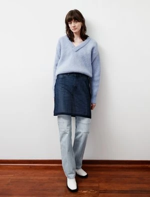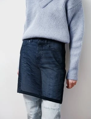 straight silhouette that falls a few inches above the knee. A breezy layering piece to throw over other skirts or trousers. Finished with a side zip and visible back seam detail.