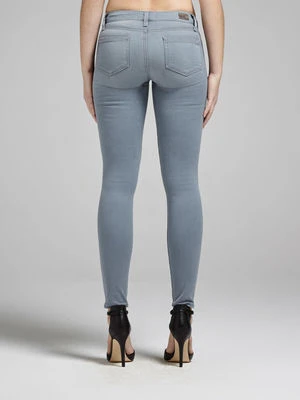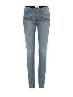 Paige’s Indio Zip jean in Newton No Whiskers are accented by ultra-cool exposed zip detail along the hip, and tarnished silver hardware. They have a neutral grey wash, are a flattering skinny leg fit, and have a low rise of 8 inches.