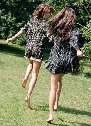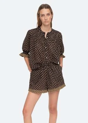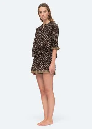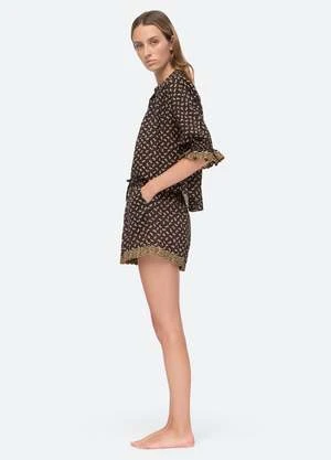 The Rosa embroidery pajama set features puff sleeves and embroidery trim detailing.