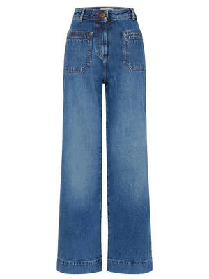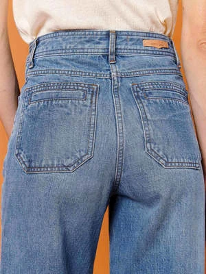The Johnny O Jeans from Sessun are a 70s inspired flared jean. Cut from 100% stonewashed denim, the jeans have a high rise fit, with front buttoned closure and a hidden zip. Finished with front and back patch pockets.