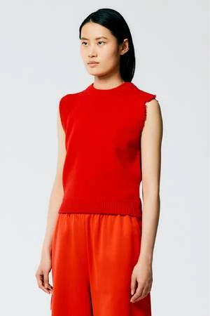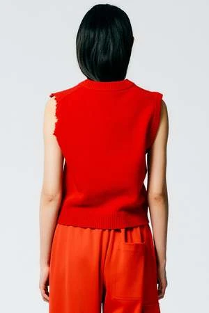 The Soft Lambswool Distressed Pullover Vest is a unique take on a classic sweater vest. Crafted sustainably from soft lambswool this pullover features an asymmetrical distressed sleeve