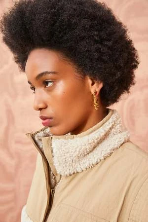 – This utilitarian vest is finished with an elastic waist connected to front pulls that create a femme and fitted silhouette.