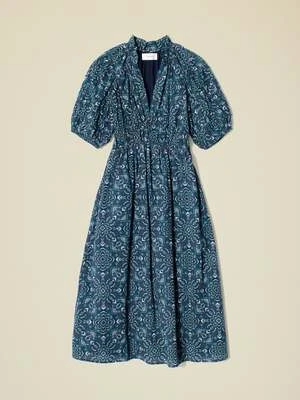 The Xirena Kara Dress in Indigo Flora presents a V-neckline and voluminous puffed sleeves, perfect to flatter the wearer with a cinched elastic waistband. Lightweight in feel, this eye-catching design is guaranteed to make a sophisticated statement.
