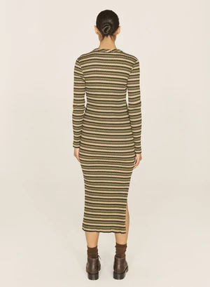 Fitted cotton jersey dress sporting stripes in an earthy colour palette.
